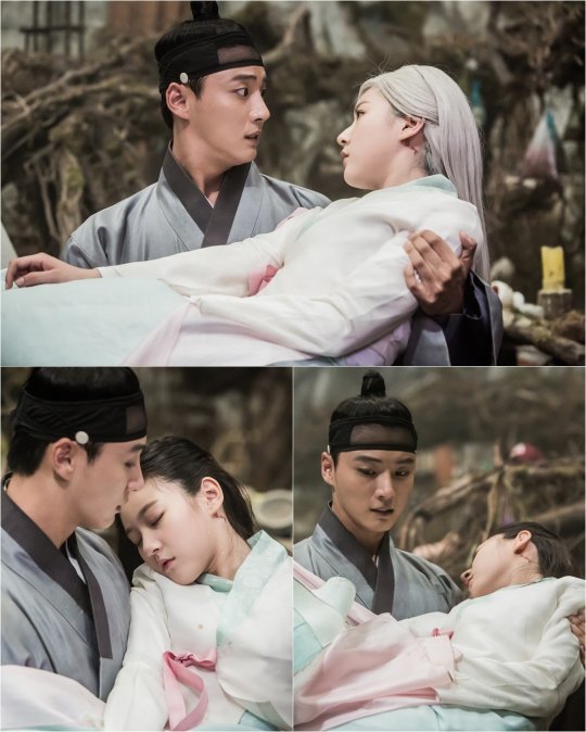 ‘마녀보감’김새론이 백발인 상태로 윤시윤 품에 안겨 쓰러진 모습이 포착됐다.