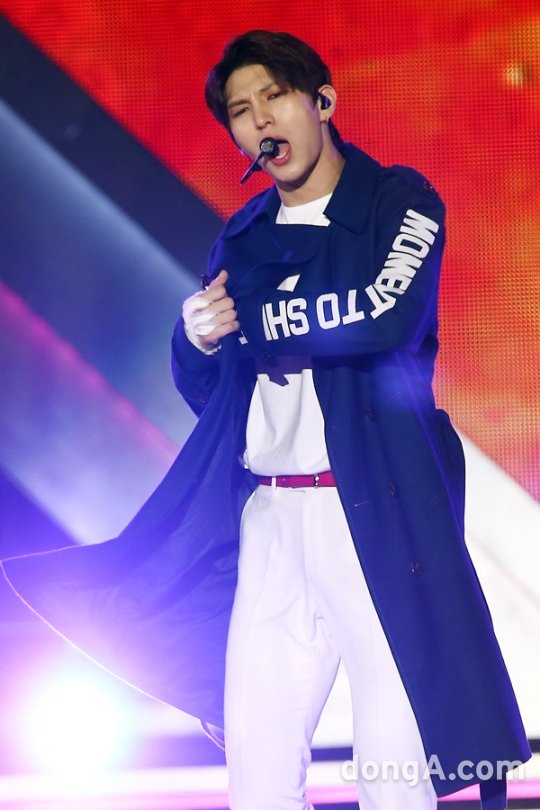 빅스의 멤버 레오가 4일 오후 서울 마포구 상암월드컵경기장에서 열린 ‘2016 드림콘서트’ 에 참석해 공연을 하고 있다.