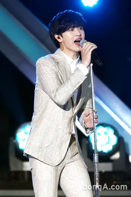 비투비의 멤버 육성재가 4일 오후 서울 마포구 상암월드컵경기장에서 열린 ‘2016 드림콘서트’ 에 참석해 공연을 하고 있다.
