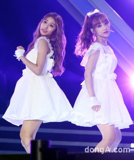러블리즈의 멤버 정예인 유지애가 4일 오후 서울 마포구 상암월드컵경기장에서 열린 ‘2016 드림콘서트’ 에 참석해 공연을 하고 있다.