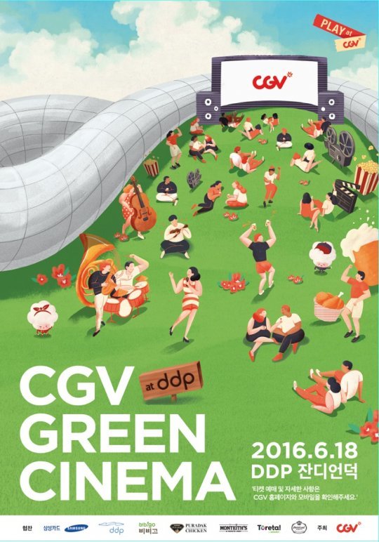 CGV는 오는 18일 오후 4시부터 10시까지 DDP 잔디언덕에서 ‘그린’을 콘셉트로 한 무비피크닉 ‘GREEN CINEMA (그린 시네마)’를 개최한다고 밝혔다. 탁 트인 야외에서 영화도 관람하고, 실력 있는 뮤지션들의 신나는 라이브 공연을 맘껏 즐길 수 있는 자리다. 다양한 먹거리와 즐길거리가 가득한 부스도 별도로 마련돼 피크닉의 매력을 물씬 느낄 수 있다.