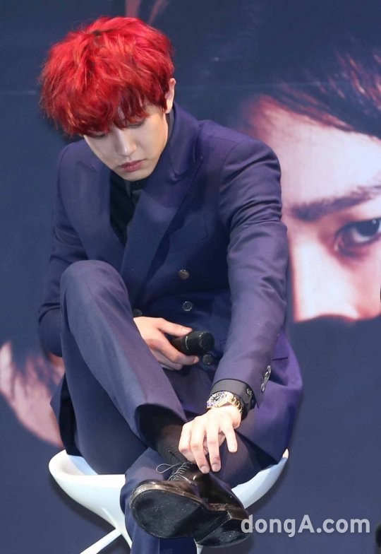 그룹 엑소의 찬열이 8일 오전 서울 강남구 삼성동 SM타운 코엑스 아티움에서 열린 정규 3집 'EX'ACT' 컴백 기자회견에 참석하고 있다.