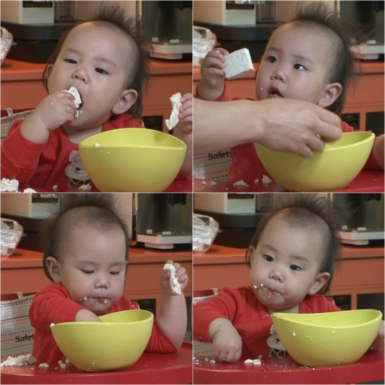 이날 로희는 기태영의 요청에 따라 두부 으깨기에 나선다. 로희는 앙증맞은 두 손을 이리저리 움직이며 성실히 두부 으깨기를 하는 가 싶더니 기태영이 요리에 집중하자 곧바로 두부 먹방을 펼쳐 웃음을 터트린다.