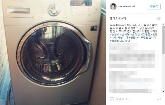 지난 5일 김민석은 자신의 인스타그램을 통해 “혜교누나가 집들이선물. 몸도 마음도 잘 세탁하고 살겠습니다. 항상 너무너무 감사합니다. 사랑합니다”라는 글과 함께 세탁기를 찍은 사진을 게재해 화제를 모은 바 있다.