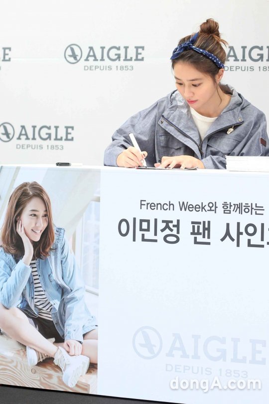 배우 이민정이 11일 오후 서울 중구 롯데백화점 본점에서 열린 팬사인회에 참석해 포토타임을 하고 있다.