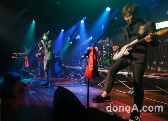 밴드 데이브레이크가 13일 오후 서울 마포구 웨스트브릿지 라이브홀에서 열린 정규 4집 앨범 말매 기념 쇼케이스에서 공연을 선보이고 있다.