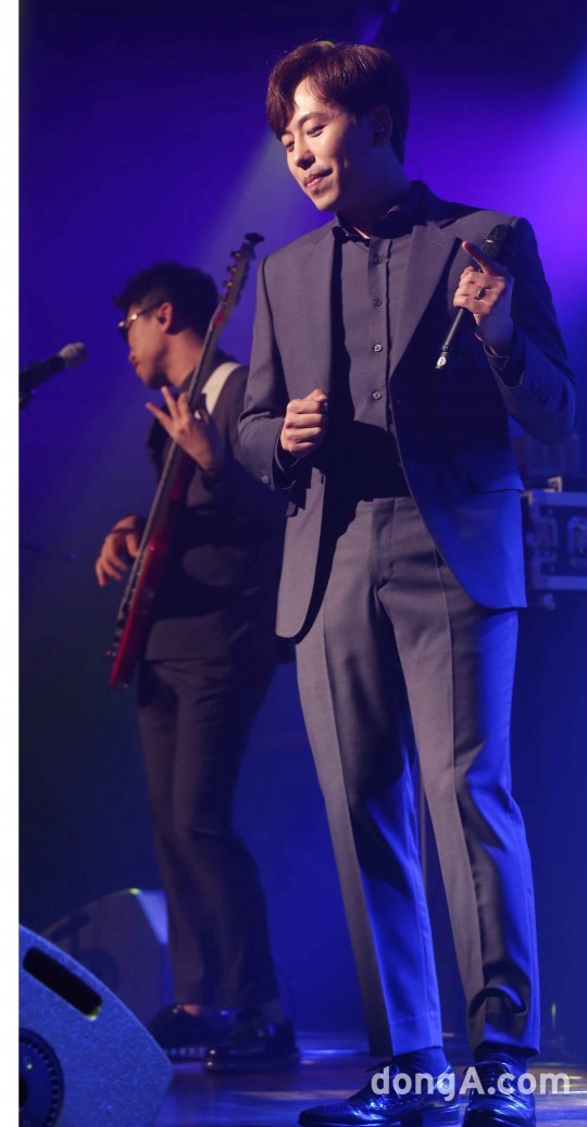 밴드 데이브레이크의 이원석이 13일 오후 서울 마포구 웨스트브릿지 라이브홀에서 열린 정규 4집 앨범 말매 기념 쇼케이스에서 공연을 선보이고 있다.