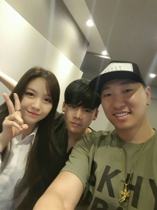 브랜뉴뮤직의 신인 래퍼 샴페인이 SNS를 통해 걸스데이 민아 그리고 소속사 대표 라이머와 함께한 인증샷을 공개했다.