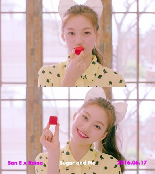 산이와 레이나는 14일 정오 걸그룹 아이오아이(I.O.I)의 멤버 김도연이 깜짝 출연한 신곡 ‘달고나’의 티저 영상을 공개했다.