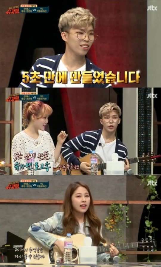 14일 방송된 JTBC '투유 프로젝트-슈가맨'에는 쇼맨으로 샘김, 권진아와 악동뮤지션이 출연했다.