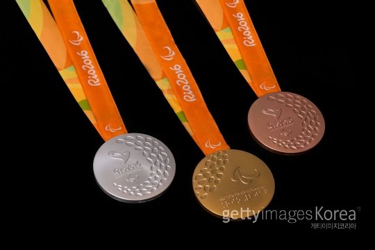 2016리우데자네이루올림픽의 메달이 15일(한국시간) 브라질 리우의 바하 올림픽 파크에서 공개됐다. 리우올림픽의 총 메달수는 2488개로 조직위원회의 엄격한 친환경 기준에 따라 제작됐다. 사진=ⓒGettyimages이매진스