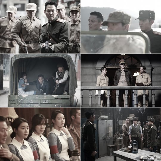 이번 작품에서 이정재는 혼신의 열연으로 극을 이끌며 전투신을 완벽하게 소화, 강렬한 카리스마로 관객들의 마음을 사로잡을 예정이다. 이어 북한군 인천지구 방어사령관 '림계진’의 날카롭고 차가운 모습이 담긴 스틸은 인천을 사수하려는 강한 의지, ‘장학수’와의 대립으로 팽팽한 긴장감을 전하는 것은 물론 이범수의 새로운 연기 변신을 기대케 한다.