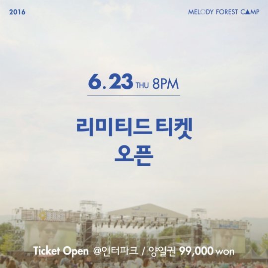 가을 음악 페스티벌 ‘멜로디포레스트캠프(이하 멜포캠)’의 리미티드(얼리버드) 티켓이 23일 오후 8시 인터파크에서 오픈 된다.