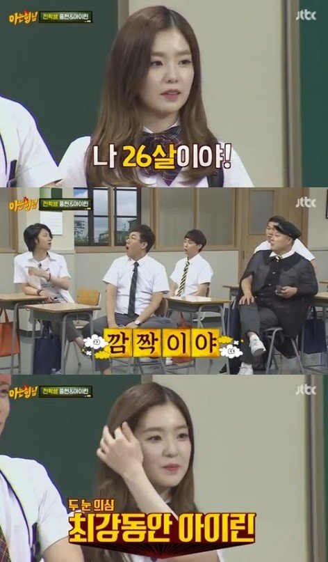 이에 강호동은 “아이린은 미성년자 아니냐”고 깜짝 놀랐고, 아이린은 “26살이다”라고 자신의 나이를 밝혔다.