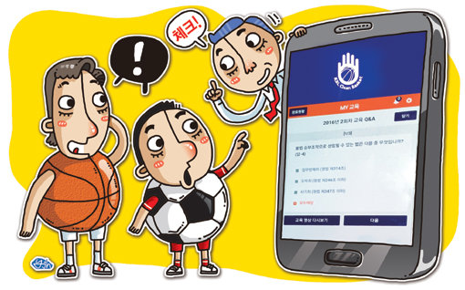 이뿐이 아니다. 불법 스포츠도박 방지 교육의 참여를 장려하기 위해 자체적으로 스마트폰 어플리케이션을 개발했다. 상·하반기로 나눠 어플리케이션에 불법 스포츠도박 관련 동영상과 문답식 설명을 업데이트해 교육 효과를 높일 수 있게 했다. KBL 이준우 사무차장은 “몇 차례 인터넷을 통해 온라인 교육을 한 적이 있었는데, 이럴 경우 특정 선수가 다른 선수들의 교육까지 일괄적으로 할 수 있다는 우려가 있었다. 어플리케이션은 스마트폰을 가진 선수가 직접 인증해야 하기 때문에 실용적 면에서 더 낫다고 판단했다. 교육에 대한 이해를 높이고 선수들의 적극적 참여를 유도하기 위한 방안을 찾기 위해 지속적으로 고심하고 있다”고 밝혔다.