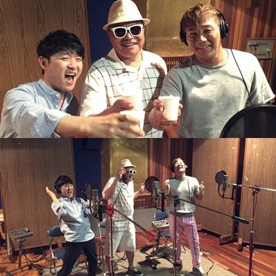 공개된 사진 속에는 김흥국과 함께 노래에 맞춰 율동을 하는 모습 등과 컵을 맞추며 환하게 웃는 모습이 담겨있다. 세 사람이 컵을 맞대며 환하게 웃는 사진은 이번 콜라보 곡 '원샷'을 떠올리게 해 깨알 홍보하는 센스를 보였다.