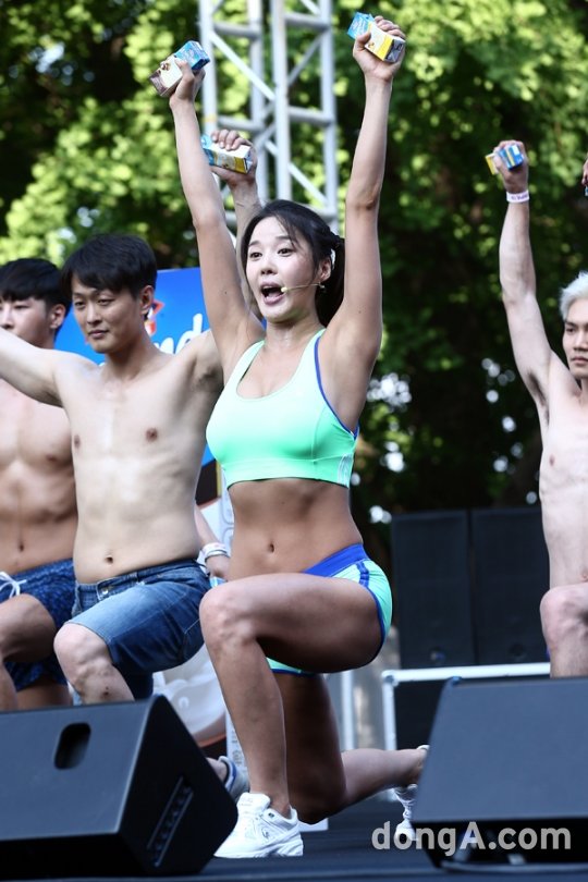방송인 레이양이 26일 오후 서울 광진구 쉐라톤워커힐호텔 리버파크 수영장에서 열린 비키니 페스티벌에 참석해 행사를 진행하고 있다.