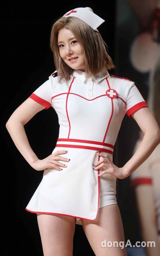 브레이브걸스의 유나가 27일 오후 서울 강남구 일지아트홀에서 열린 3번째 미니앨범 'HIGH HEELS' 발매 기념 쇼케이스에서 포토타임을 하고 있다.