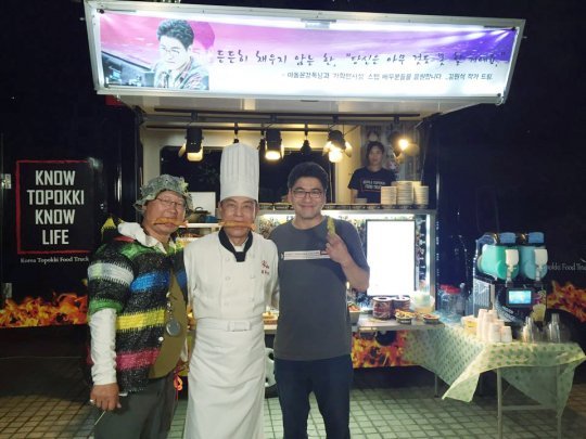 오늘(28일) 공개된 사진에는 이동윤PD와 배우 김영철 등이 밥차 앞에서 음식을 입에 물고 행복한 표정을 짓고 있는 모습이 담겨 있다.