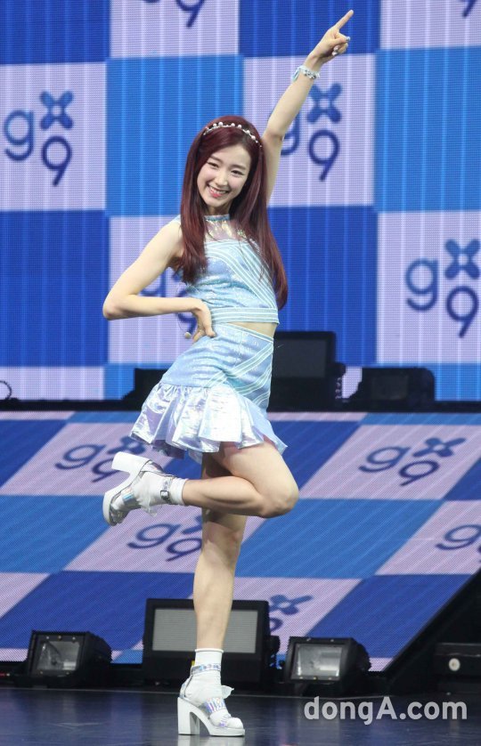 걸그룹 구구단의 하나가 28일 오후 서울 광진구 예스24라이브홀에서 열린 'The Little Mermaid' 데뷔 쇼케이스에서 포토타임을 하고 있다.