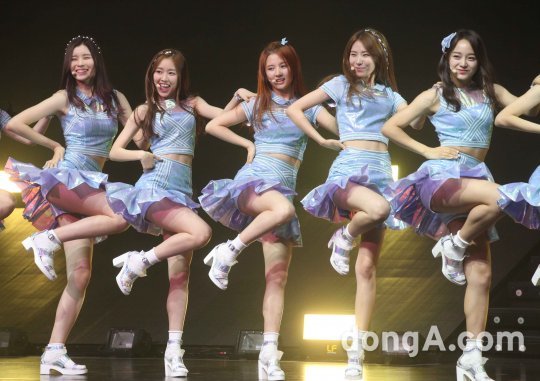 걸그룹 구구단이 28일 오후 서울 광진구 예스24라이브홀에서 열린 'The Little Mermaid' 데뷔 쇼케이스에서 화려한 무대를 선보이고 있다.