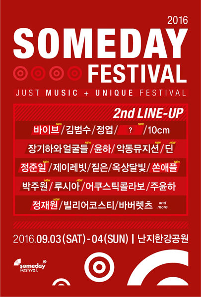 올해 가장 기대되는 뮤직 페스티벌로 음악팬들의 주목을 받는 ‘섬데이 페스티벌 2016’(Someday Festival 2016)이 27일 SNS페이지를 통해 2차 라인업을 추가 발표하며 총 20팀의 라인업을 공개했다.