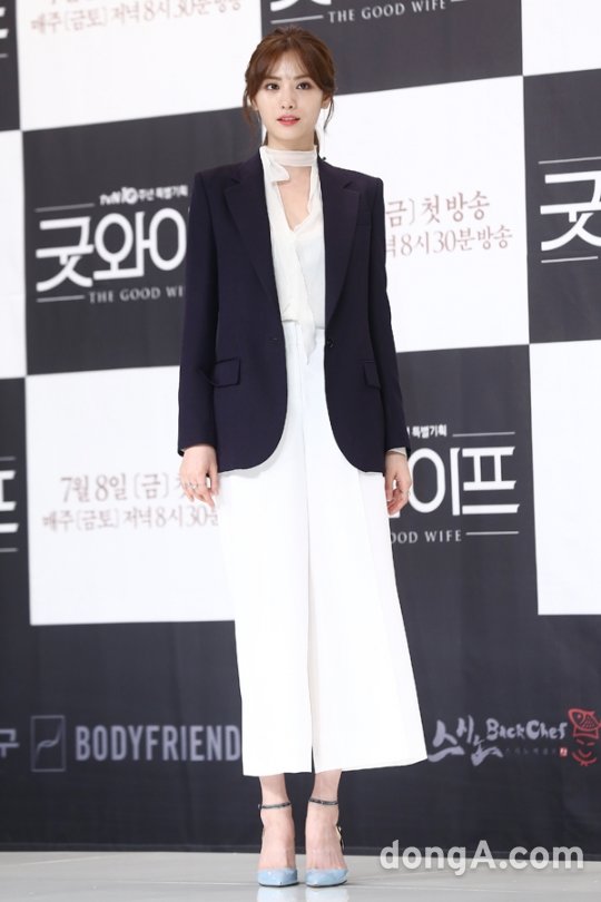 가수 나나가 29일 오후 서울 영등포구 영등포 타임스퀘어에서 열린 케이블채널 tvN 금토드라마 '굿와이프' 제작발표회에 참석해 포토타임을 하고 있다.