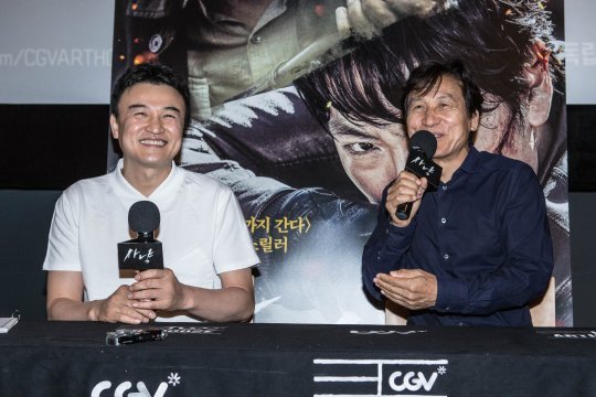 ‘사냥’은 우연히 발견된 금을 독차지하기 위해 오르지 말아야 할 산에 오른 엽사들과 보지 말아야 할 것을 봐버린 사냥꾼 기성의 목숨을 건 16시간 동안의 추격을 그린 작품. 영화 측은 지난 6월 28일(화) 압구정CGV 아트하우스 ‘안성기 헌정관’에서 의미 있는 GV를 열었다.