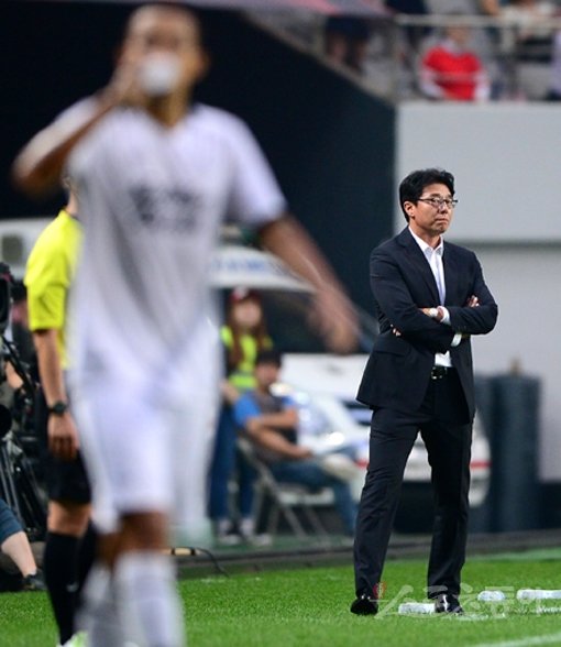 29일 서울월드컵경기장에서 ‘현대오일뱅크 K리그 클래식 2016’ 17라운드 FC 서울과 성남 FC의 경기가 열렸다. 전반 FC 서울 황선홍 감독이 동점골을 넣은 성남 FC 티아고를 바라보고 있다. 이날 황선홍 감독은 FC 서울에서 감독으로 데뷔전을 갖는다.