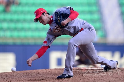 3일 잠실야구장에서 '2016 타이어뱅크 KBO 리그' LG 트윈스와 SK 와이번스의 경기가 열렸다. 1회말 SK 선발 박종훈이 힘차게 공을 던지고 있다.