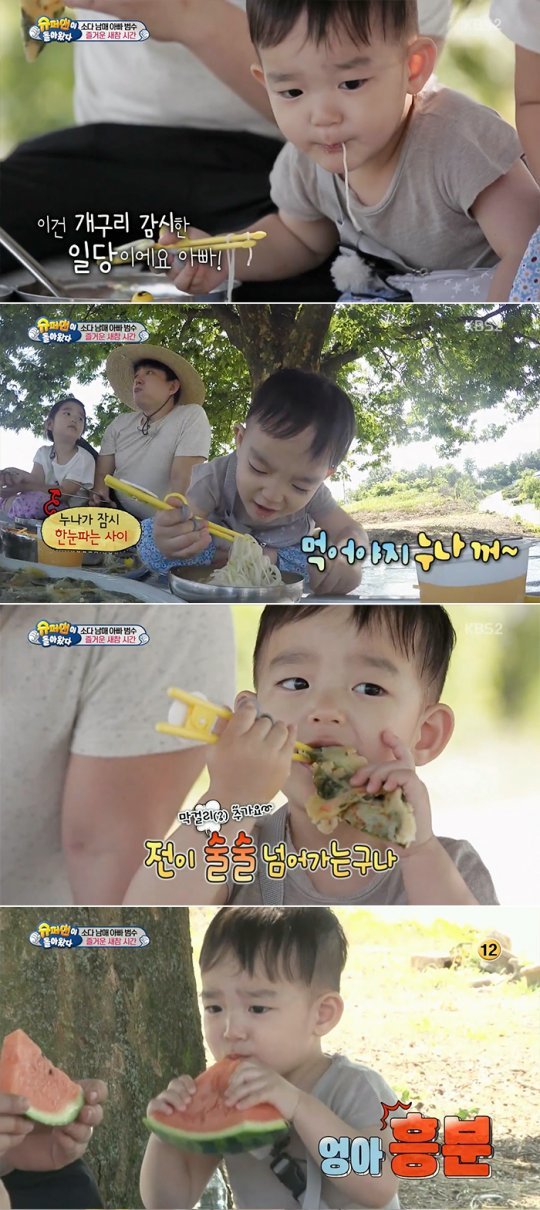 한편 자신의 다리 길이 보다 긴 장화 때문에 논에 들어가지 못한 다을이는 누나와 아빠의 노동을 감상하며 태평한 한때를 보냈다. 하지만 새참이 도착하자마자 기분이 좋아진 다을이는 국수부터 파전을 폭풍 흡입하기 시작, 심지어 누나의 국수까지 넘보기 시작했다. 또한 가위바위보로 먹고 싶은 수박을 고를 때에도 가장 큰 수박을 덥석 쥐고 흡입해 먹방신 강림을 제대로 보여줬다.