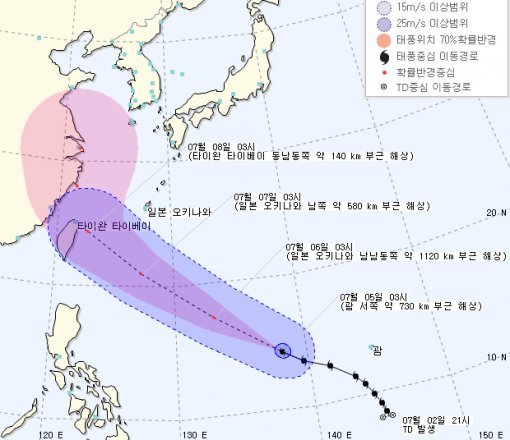 5일 올해 1호 태풍 ‘네파탁’이 북상하면서 중부 지방에 최대150mm의 폭우가 쏟아질 것으로 예보됐다. 수도권과 강원 내륙에는 호우주의보가 발효됐다.