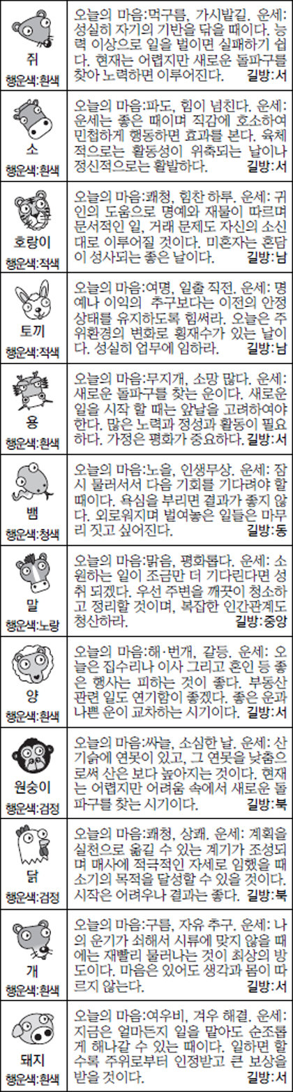 금일 복권, 주식, 부동산 매입 행운의 띠: 호랑이,말,개