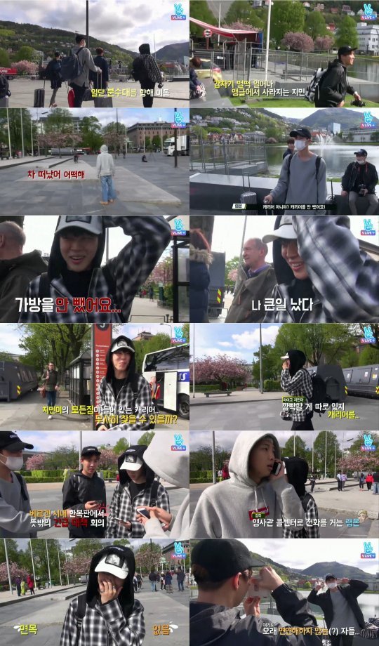 이날 우여곡절 끝에 노르웨이 베르겐에 도착한 방탄소년단의 멤버는 버스에서 내리자마자 아름다운 풍경에 한껏 기분을 내기 시작했다. 하지만 잠시 후 지민이 크게 당황하며 어디론가 급히 달려갔고, 알고보니 공항 버스에 자신의 캐리어를 놓고 내렸었다.