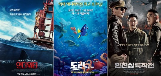 이처럼 바다를 배경으로 한 다양한 장르 영화들의 연이은 개봉 소식에 관객들의 기대가 고조되고 있는 가운데, 극한의 공포 스릴러 ‘언더 워터’는 오는 7월 13일 개봉 예정이다. ‘도리를 찾아서’는 6일 개봉해 관객들을 만나고 있으며 ‘인천상륙작전’은 7월 중 개봉을 앞두고 있다.