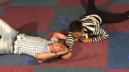 김종민과 김일중이 촬영 중 머리채를 잡는 등 우격다짐을 해 눈길을 끌었다.