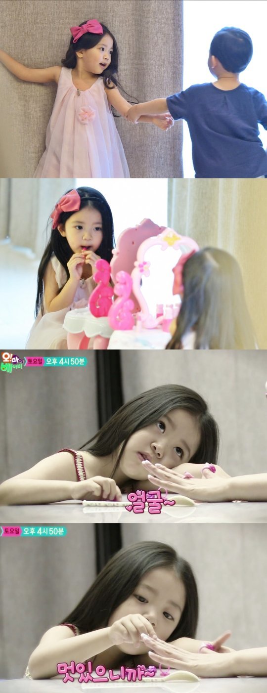 오는 9일 토요일 오후 4시 50분 방송되는 SBS ‘오!마이베이비’에서는 서우의 남자친구가 정시아네 집을 방문한다. 서우의 마음을 사로잡은 남자친구는 같은 유치원에 다니는 5살 동갑내기 정원이. 정원이를 집으로 초대한 서우는 아침 일찍부터 콧노래를 부르며 머리를 드라이하고 거울을 보며 만족한 듯 “얼굴은 이뻐!”라고 혼잣말을 했다. 엄마 정시아가 “머리는 어떻게 할까?”라고 묻자 “머리는 됐고, 옷을 보고 있을께~”라며 꽃단장에 열중했다. 액세서리도 뺐다 끼웠다 해보고 장난감 립스틱으로 입술도 바르는 등 거울 앞에서 떠날 줄을 몰랐다.