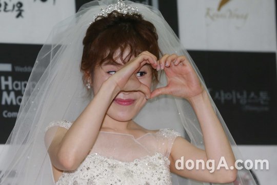 방송인 박슬기가 9일 서울 영등포구 여의도 샤이닝스톤 예식장에서 열린 결혼식에 앞서 포토타임을 하고 있다.