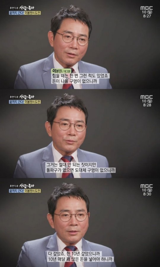 이봉원은 10일 방송된 MBC ‘휴먼다큐-사람이 좋다’(이하 사람이 좋다)에서 10년 만에 빚을 모두 갚았다고 밝혔다.