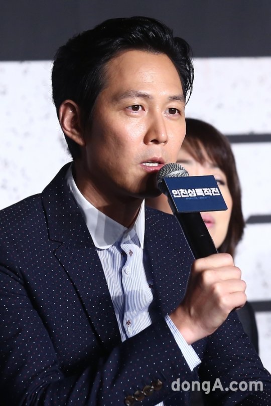 배우 이정재가 13일 오전 서울 영등포구 콘래드호텔에서 열린 영화 '인천상륙작전' 내한 기자회견에 참석해 기자간담회를 하고 있다.
