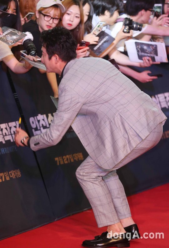 배우 정준호가 13일 오후 서울 영등포 타임스퀘어에서 열린 영화 '인천상륙작전' 레드카펫 행사에 참석해 팬들과 즐거운 시간을 보내고 있다.