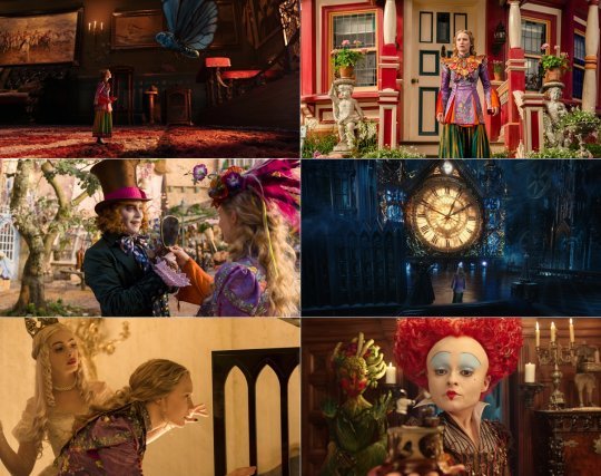 이번에 공개된 예고편은 보는 이들을 사로잡는 한층 더 화려해진 비주얼과 스펙타클한 모험으로 가득 차 있다. 나비가 된 압솔렘(앨런 릭먼)을 따라 다시 이상한 나라로 돌아간 앨리스(미아 와시코브스카)는 위기에 빠진 모자 장수(조니 뎁)를 구하기 위해 시간(사챠 바론 코헨)을 찾아가 과거로 시간여행을 떠나게 된다. 이 과정에서 신비로운 분위기의 시계 속 세계로 들어가는 앨리스의 모습과 스스로 움직이는 거대한 체스판, 계절이 바뀌고 하늘이 바다가 되는 시공간의 변화 등 예측불허의 박진감 넘치는 모험들은 영화에 대한 기대감을 고조시킨다.
