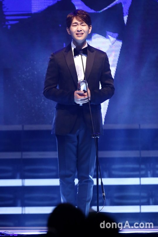 샤이니의 멤버 온유가 19일 오후 서울 동대문구 장충체육관에서 열린 '제2회 신스틸러 영화상' 시상식에 참석해 수상소감을 말하고 있다.