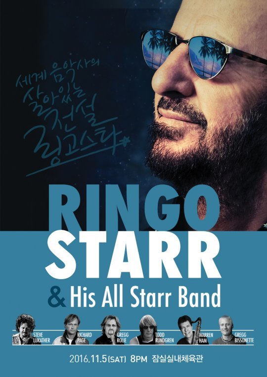 비틀즈 링고스타 And His All Starr Band 내한공연에는 비틀즈 링고스타와 락 밴드 토토(Toto)의 멤버인 스티브 루카서(STEVE LUKATHER), 유토피아(Utopia)의 기타리스트이자 작곡가인 토드 룬드그렌(TODD RUNDGREN)이 투어에 참여하며 11월 5일(토) 오후 8시 잠실 실내체육관에서 한국팬들과의 역사적인 만남이 이뤄질 예정이다.