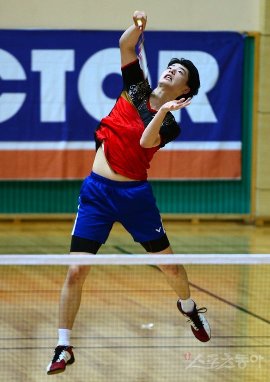 스포츠동아와 동아일보사가 주최하고 한국초등학교배드민턴연맹, 한국중고배드민턴연맹, 한국대학배드민턴연맹이 공동 주관하는 ‘이용대 올림픽제패기념 2016 화순 전국 초·중·고·대학교대항 배드민턴선수권대회’가 24일 전라남도 화순 하니움문화스포츠센터에서 개막했다. 남자대학단체전 백석대학교와 한국체육대학교의 경기에서 한국체육대학교 김현규가 스매싱을 날리고 있다.