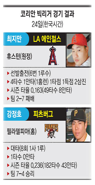 물론 걸림돌도 있다. 좀처럼 올라가지 않는 타율은 숙제다. 이날까지 최지만이 기록한 시즌 타율은 0.163(49타수 8안타). 이달 중순 6연속경기 안타를 때려내며 좋은 페이스를 보이기도 했지만 올 시즌 단 한번도 멀티히트를 기록하지 못한 점은 아쉬움으로 남는다. 부상으로 빠진 주전 1루수 C.J. 크론이 돌아오기 전까지 조금 더 수치를 끌어올려야하는 과제를 풀어내야만 후반기는 물론 내년 시즌에도 주전 경쟁에서 살아남을 수 있다. 한편 강정호는 8회 대타로 나와 유격수 뜬공으로 경기를 마감했다. 시즌 타율은 0.236(182타수 43안타)을 기록했고, 팀은 7-4로 이겼다.