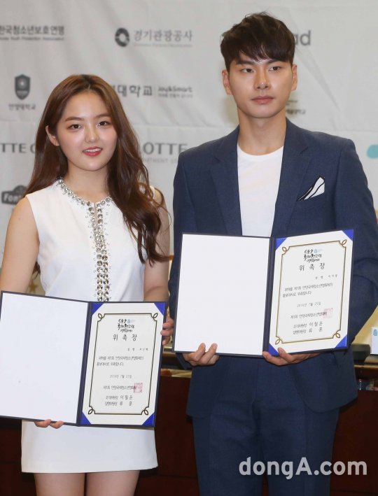 배우 서신애와 이이경이 25일 오전 서울 중구 프레스센터에셔 열린 '제 1회 안양 국제청소년 영화제' 기자회견에서 홍보대사 위촉식을 갖고 있다.