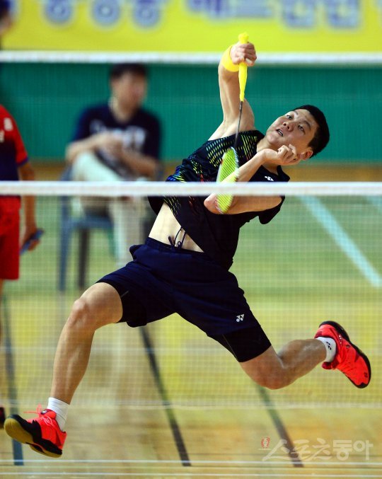 스포츠동아와 동아일보사가 주최하고 한국초등학교배드민턴연맹, 한국중고배드민턴연맹, 한국대학배드민턴연맹이 공동 주관하는 ‘이용대 올림픽제패기념 2016 화순 전국 초·중·고·대학교대항 배드민턴선수권대회’가 25일 전라남도 화순 하니움문화스포츠센터에서 열렸다. 남자고등부단체전 매원고등학교(김원호)와 부산동고등학교(이윤규)의 경기에서 부산동고 이윤규가 스매싱을 날리고 있다.