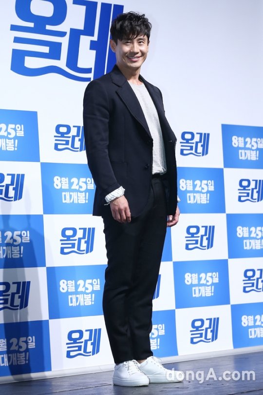 배우 신하균이 26일 오전 서울 광진구 건대입구 롯데시네마에서 열린 영화 '올레' 제작발표회에 참석해 포토타임을 하고 있다.