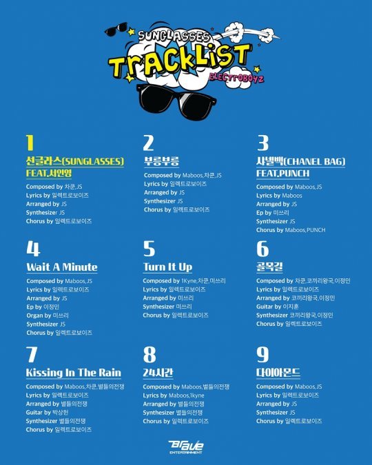일렉트로보이즈는 28일 자정 공식 SNS을 통해 2번째 정규앨범 ‘Sunglasses'의 트랙리스트를 공개했다.